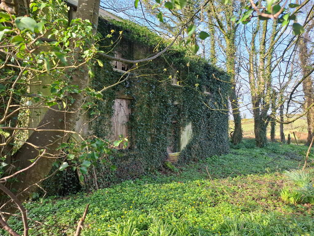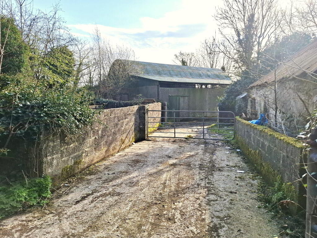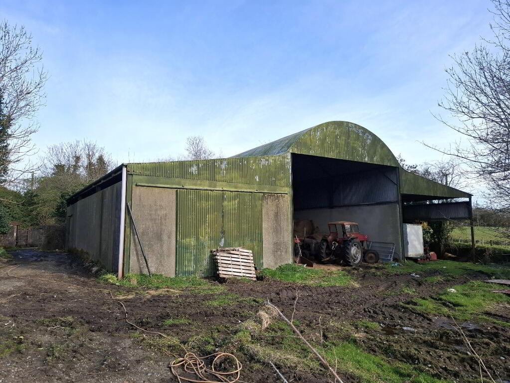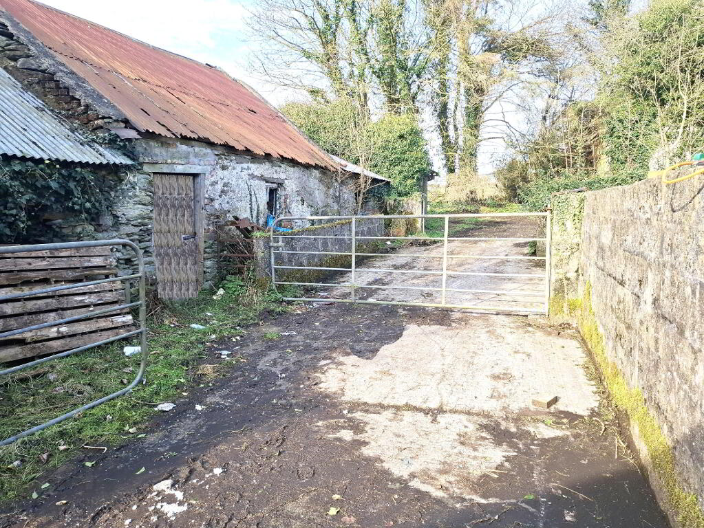 There is a derelict 2 storey dwelling house, accessed via entrance from the county road (R239). The house is currently derelict, would require renovation and upgrading and may qualify for the Vacant Property Refurbishment Grant. The farmyard consists of a 3 bay round roof shed with lean-to and outhouse.